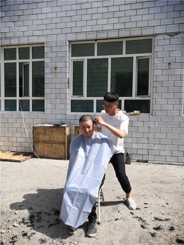 時間緊、任務重,駐地遠離城區(qū),為了不影響項目進度,大家都沒有時間去城區(qū)理發(fā)。在新疆炎熱的夏天,長發(fā)給工作帶來極大不便??吹竭@里,老黨員張榮平同志自費買來理發(fā)器,供項目組成員理發(fā),野外也不在乎發(fā)型,以上山工作不熱為原則,在不知不覺中項目組成長出了一位“地質(zhì)理發(fā)師”。