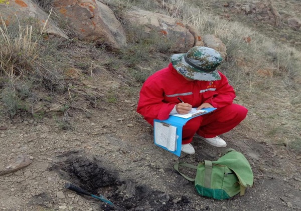 當遇見煤層露頭時,像遇見了“寶貝”一樣,用地質(zhì)錘深深地挖,詳細認真記錄,做好野外第一手資料的準確收集。時間過的真快,不知不覺中已經(jīng)到了午飯時間,回駐地吃飯吧,路途遙遠顛簸而且還耽誤有效工作時間,所以經(jīng)常是饃饃加黃瓜的簡餐搞定中午飯。