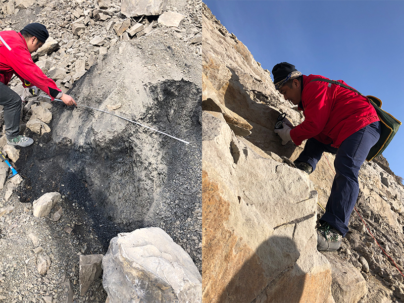 而歲末的新疆異常寒冷,堪稱“北國風光,千里冰封,萬里雪飄”。平時需要一個半小時的山路,由于路面積雪、結冰,往往需要三個小時以上,項目成員走到目的地早已“熱氣騰騰”,頂著將近零下二十度的嚴寒,進行地質編錄。雖然雙手戴著手套,但一會兒就會被凍僵。經過多個小時的認真編錄,項目成員的耳朵、鼻子、手腳早已凍的沒有了知覺。項目駐地雖然暖和一點,但艱苦的住宿條件也難以完全抵擋蝕骨的寒風。