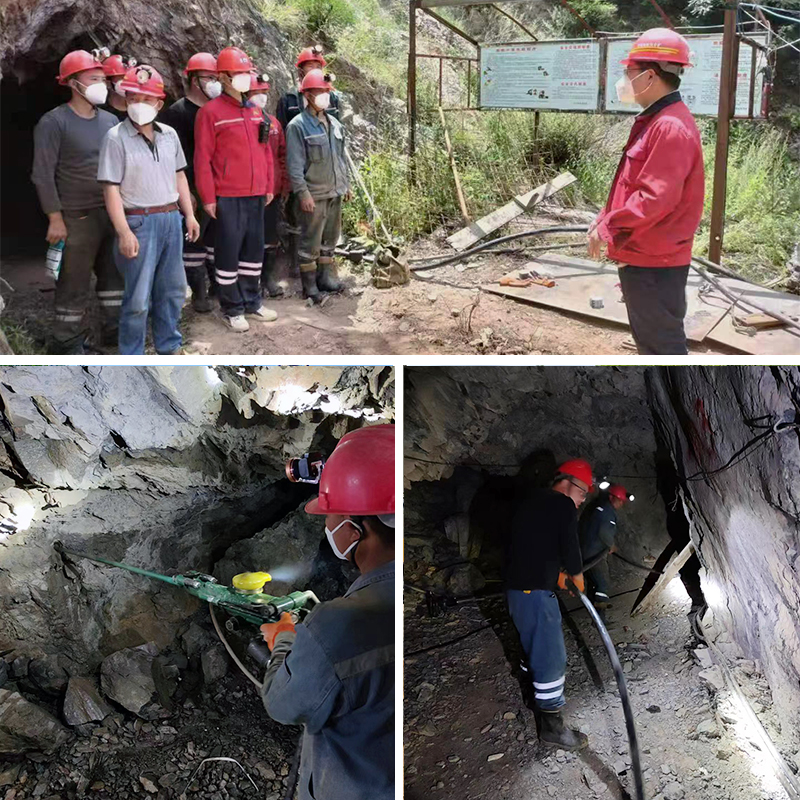 自項目批復(fù)以來,陜西龐家河金礦上下齊心,共謀發(fā)展。從金礦董事長、總經(jīng)理,到采場每一名工程技術(shù)人員,經(jīng)多次研討、實地勘查,精心組織設(shè)計,確定出了一套經(jīng)濟高效的工程施工方案。在隨后的半個月里,金礦同寶雞鑫龍建設(shè)龐家河金礦項目部的同志們一起,頭頂炎炎烈日,順利完成了上山道路的修整,高壓電纜、風(fēng)、水管線的敷設(shè),局扇、空壓機等機器設(shè)備的維護、保養(yǎng)等工程開工前的所有準備工作,為1210中段外圍探礦工程正式開工打下了堅實的基礎(chǔ)。