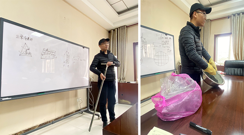 培訓(xùn)主要采取理論學(xué)習(xí)和實(shí)際操作相結(jié)合的教學(xué)方式。由貿(mào)易公司業(yè)務(wù)部副部長(zhǎng)楊攀圍繞浮選礦、冰銅、堆包的取樣制樣方法等內(nèi)容進(jìn)行理論講述,并結(jié)合自己實(shí)際工作中遇到的案例,詳細(xì)講解了二十分法及各項(xiàng)標(biāo)準(zhǔn)規(guī)范。同時(shí),還將采樣的工具拿到現(xiàn)場(chǎng)進(jìn)行了演示教學(xué),讓參訓(xùn)員工在觀(guān)摩過(guò)程中熟練掌握所學(xué)內(nèi)容,確保大家都能學(xué)懂弄通。
