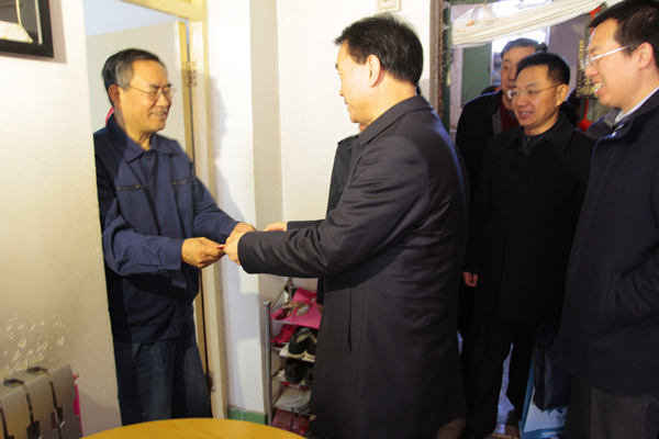 隨后,杜航偉副省長一行來到公司兩戶困難職工家中,噓寒問暖,與他們促膝交談,親切詢問他們的身體狀況和家庭生活等情況,鼓勵他們堅定信心,勇敢面對生活,度過困難,并為他們送上了慰問金;同時,他還囑咐隨行人員要多關心困難職工生活,幫助他們解決生活中面臨的實際困難,使他們真正感受到黨和政府的關懷。