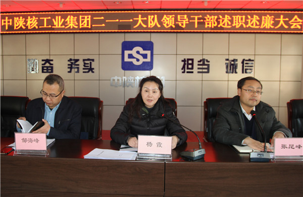 12月19日,集團(tuán)公司黨委委員、紀(jì)委書記楊霞帶領(lǐng)黨委工作部部長張昆峰、紀(jì)檢監(jiān)察部部長鄒海峰等一行7人的考核組,對二一一大隊2017年度黨建工作目標(biāo)管理責(zé)任制落實(shí)情況進(jìn)行綜合考核,并對領(lǐng)導(dǎo)班子進(jìn)行考核評價。公司領(lǐng)導(dǎo)班子成員、中層干部、部分職工代表參加了干部述職述廉大會。會議由張昆峰部長主持。