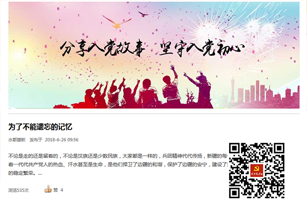 《分享入黨故事,堅(jiān)守入黨初心》在線互動(dòng),引導(dǎo)廣大黨員交流自己的心路歷程和經(jīng)歷體會(huì),進(jìn)一步增強(qiáng)黨員意識(shí)。