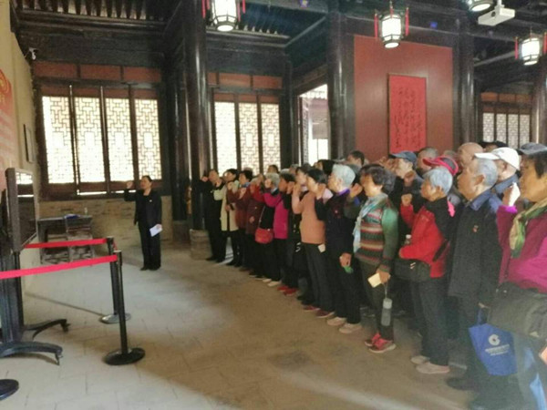 在宣講員飽含深情的解說、引導(dǎo)下,大家分別參觀了安吳青訓(xùn)班紀(jì)念館各個(gè)展廳、劉瑞龍同志辦公室、望月樓馮文彬、胡喬木同志辦公室等革命遺址。在參觀、學(xué)習(xí)、聆聽這一時(shí)期真實(shí)歷史的過程中,大家被當(dāng)時(shí)的革命青年這種堅(jiān)定的政治信仰、民族意識(shí)、愛國情懷及艱苦奮斗、團(tuán)結(jié)友愛的良好品德所深深感染,被前輩們?cè)跇O端艱苦環(huán)境下,這種“天作被、地當(dāng)床”的革命樂觀主義精神,這種“不畏艱難、學(xué)好本領(lǐng)上戰(zhàn)場”的大無畏革命精神所深深感動(dòng)和震撼。在陳列著當(dāng)年青訓(xùn)班學(xué)員教學(xué)場景的第六展廳,離退休黨總支書記史淑萍以《傳承青訓(xùn)精神 堅(jiān)定理想信念》為主題給大家上黨課,同志們列隊(duì)佇立,認(rèn)真聽講,從而加深了對(duì)青訓(xùn)班輝煌歷史的認(rèn)識(shí),加深了對(duì)中國共產(chǎn)黨人艱苦奮斗優(yōu)良革命傳統(tǒng)和勇往直前革命抗?fàn)幘竦恼J(rèn)識(shí)。之后,黨員同志們聚集在鮮紅的黨旗下,鄭重的舉起右拳,重溫入黨誓詞,那錚錚誓言響徹云霄… …