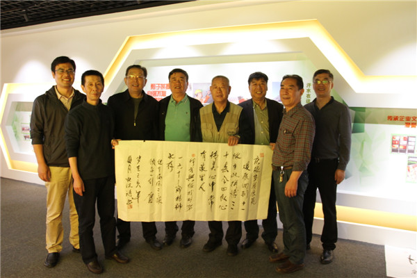 隨后,老領(lǐng)導(dǎo)們來到文化展廳,切身感受公司63年的發(fā)展歷程和取得的輝煌成就。駐足于1957年一小隊(duì)完成普查任務(wù)時(shí)興奮激動(dòng)的合影前,留戀于1966年401鈾礦熱火朝天大會(huì)戰(zhàn)的場景中,激動(dòng)于1987年鳳縣龐家河金礦的重大發(fā)現(xiàn),興奮在2014年鳳縣馬蹄溝金礦的找礦突破.......,大家一邊參觀、一邊交流,回憶當(dāng)年大隊(duì)發(fā)展中的艱苦歷程,言談之間流露出對(duì)二一一大隊(duì)的深厚感情??吹揭粡垙埨险掌约罢掌惺煜さ睦贤?、老同學(xué),特別是在展出的老照片中找出當(dāng)年的自己時(shí),激動(dòng)的心情溢于言表。參觀臨近結(jié)束時(shí),原老隊(duì)長王快法揮毫題詞“情深似?!彼膫€(gè)大字,充分表達(dá)了老領(lǐng)導(dǎo)的愛隊(duì)念隊(duì)之情,讓大家深受感動(dòng)。