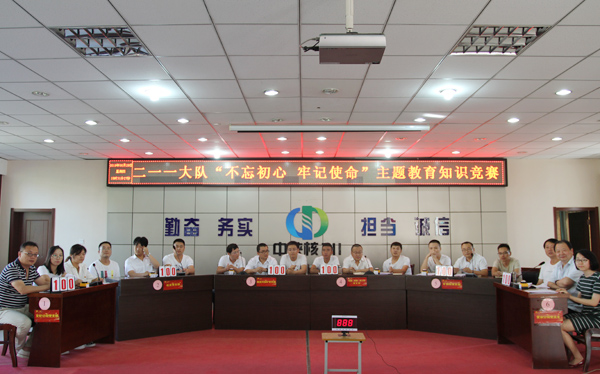 以賽促學(xué)、以學(xué)促行,為進一步推進“主題教育”深入開展,提升廣大黨員黨建知識,激發(fā)學(xué)習工作熱情,8月29日下午,二一一大隊有限公司在機關(guān)四樓大會議室舉辦“不忘初心、牢記使命”主題教育知識競賽活動。來自各基層黨支部的6支代表隊18名參賽隊員個個意氣風發(fā)、精神飽滿。大隊黨委書記、董事長黨建華,黨委副書記、總經(jīng)理郭科鋒,紀委書記張宏偉等組成的評委會成員一一前排就座,各支部書記、機關(guān)全體工作人員、灞橋片區(qū)各實體單位黨員及職工共計50余人參加活動,為選手們加油鼓勁。