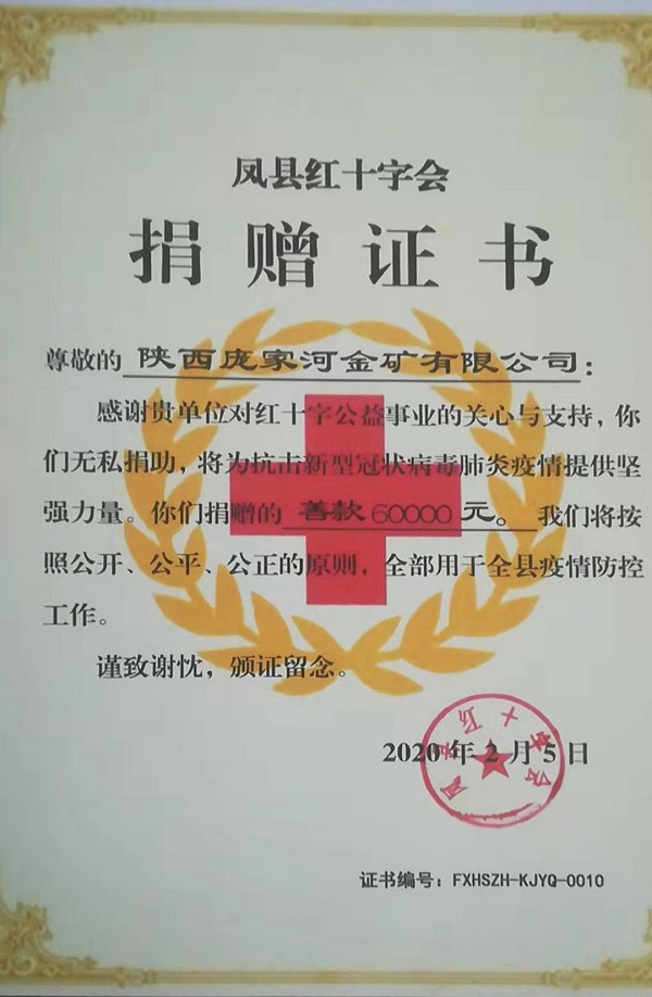 ——陜西龐家河金礦有限公司捐款6萬元助力防控疫情