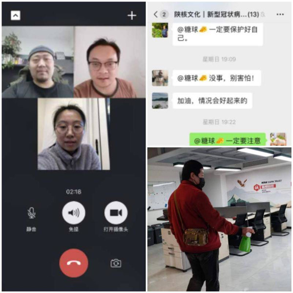 陜核文化公司開展在家辦公模式,鼓勵(lì)員工對(duì)現(xiàn)有業(yè)務(wù)進(jìn)行梳理總結(jié),積極開展網(wǎng)絡(luò)辦公對(duì)接業(yè)務(wù)。對(duì)春節(jié)假期未返回的外地人員和因所在小區(qū)發(fā)現(xiàn)疑似患者被居家隔離員工進(jìn)行心理安撫和實(shí)時(shí)監(jiān)督,確保公司員工的身心健康。并定期對(duì)公司辦公區(qū)域進(jìn)行全面消毒,隨時(shí)為復(fù)工做好準(zhǔn)備。
