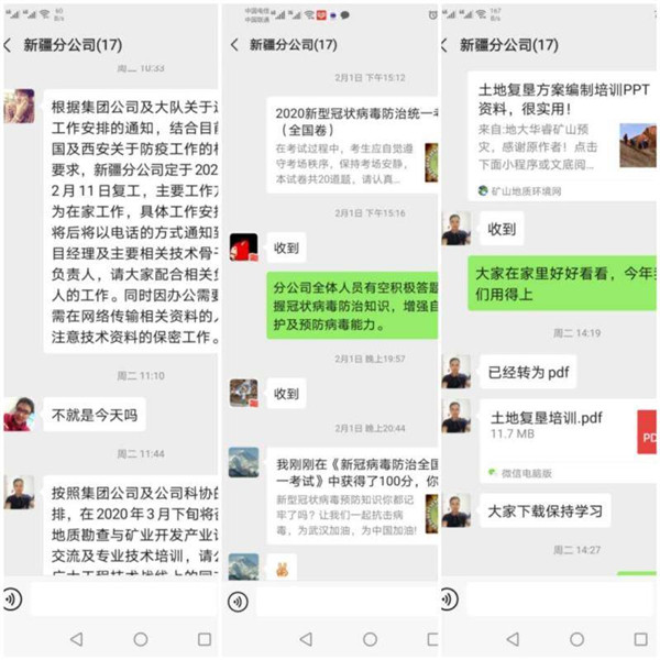 新疆分公司以學(xué)習(xí)強(qiáng)國(guó)、微信、視頻電話、線上病毒防治考試等形式,加強(qiáng)疫情防控宣傳,安排新疆分公司重點(diǎn)項(xiàng)目開展,以多種形式和項(xiàng)目方溝通商洽,對(duì)接項(xiàng)目,確保疫情期間項(xiàng)目的有序推進(jìn),為2020年市場(chǎng)項(xiàng)目開拓打下基礎(chǔ)。組織技術(shù)人員線上學(xué)習(xí)業(yè)務(wù)知識(shí),提升工作能力,適應(yīng)專業(yè)工作轉(zhuǎn)型發(fā)展。