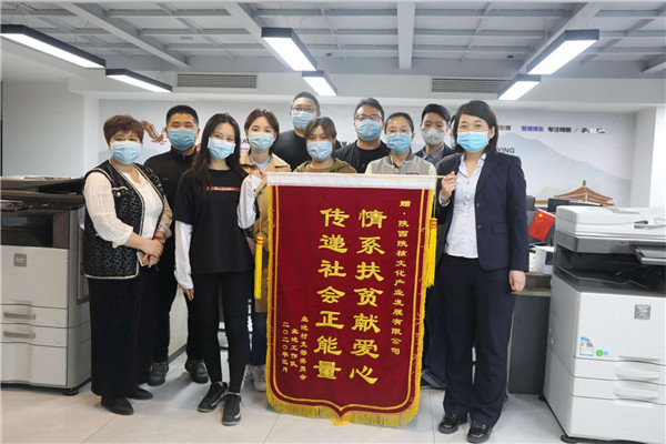 自2019年底開(kāi)始,陜西陜核文化產(chǎn)業(yè)發(fā)展有限公司積極參與西安市臨潼區(qū)穆寨業(yè)池村地方特色農(nóng)產(chǎn)品的包裝設(shè)計(jì),免費(fèi)提供全套設(shè)計(jì)制作服務(wù)。3月30日下午,浐灞生態(tài)區(qū)管理委員會(huì)駐業(yè)池村工作隊(duì)隊(duì)長(zhǎng)陳江代表業(yè)池村支部委員會(huì)、業(yè)池工作隊(duì)為公司送來(lái)錦旗表示感謝。公司被當(dāng)?shù)亓腥朊撠毠?jiān)“愛(ài)心企業(yè)”名錄。