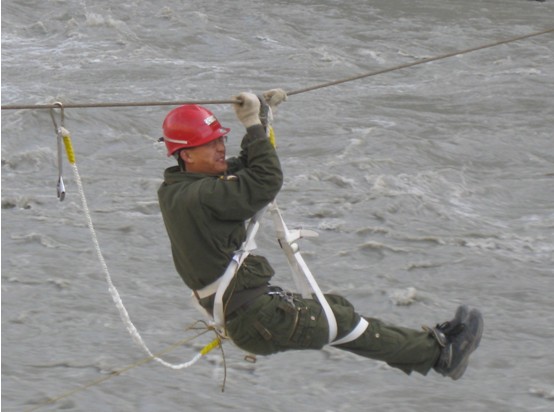 木札特銅礦在吉爾姆金礦的對面,但中間有一條寬約50多米的木札特河,河水很急,過河的路被洪水沖毀,車輛無法通行,我們找到了踏勘時發(fā)現(xiàn)的“索道纜車”,只能渡“天險”。李滿明利用保險帶,從鋼絲繩上攀過去,將小車?yán)^來,以便讓別的同志通過;雖然很驚險,但也很刺激,可以說是“苦并快樂著”。