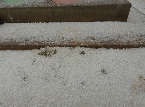 接下來的幾天一直下大雪,5月2日大雪,厚達(dá)12cm(圖1),5月3日冰雹,厚達(dá)8cm(圖2)。此時(shí),我們的蔬菜已經(jīng)吃完了,每天方便面、炒米飯將就。一想起這幾天晚上駐地外野狼嚎叫,白天大雨漂泊,我們就暗自慶幸:幸虧是住在村上的校舍里沒住帳篷,不然就“水漫金山寺”了。