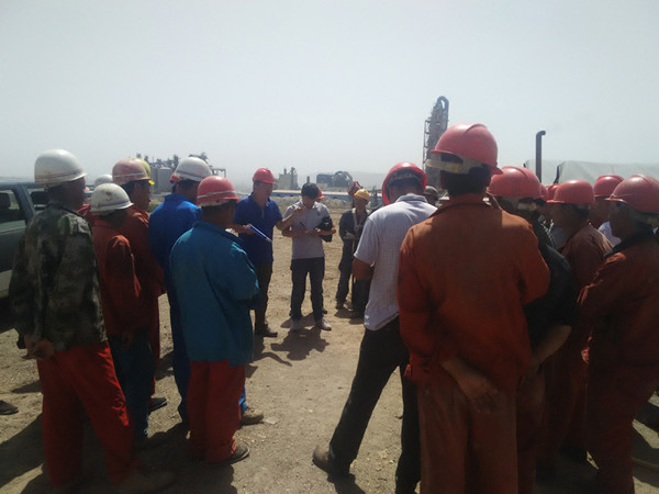 經(jīng)過前期的充分準(zhǔn)備工作,施工隊伍到位,鉆機(jī)全部開動,熱火朝天的干起來了。8月16日,地礦局第三地質(zhì)大隊安全生產(chǎn)科干事和新疆地調(diào)所劉書記在項目成員的陪同到鉆機(jī)指導(dǎo)檢查安全生產(chǎn)工作。實地查看了多處鉆機(jī)的施工,召開現(xiàn)場會,對鉆機(jī)作業(yè)人員進(jìn)行了現(xiàn)場安全教育培訓(xùn)。提出了施工過程中做到“四不傷害”( 不傷害他人,不被他人傷害,不傷害自己,保護(hù)他人不被傷害);“三不違”(不違章指揮,不違章操作,不違反勞動紀(jì)律)。培訓(xùn)結(jié)束后現(xiàn)場對工人進(jìn)行了鉆探安全培訓(xùn)教育考試。地調(diào)所劉書記對項目目前存在的技術(shù)問題進(jìn)行了剖析,并提出了下一步工作建議。