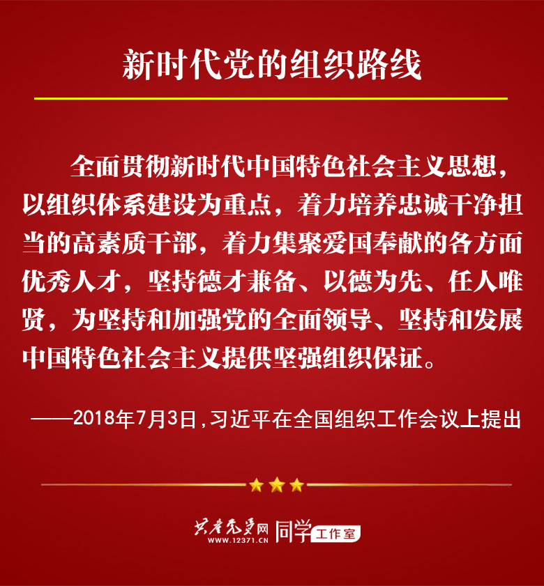 2020年6月29日,中共中央政治局就“深入學(xué)習(xí)領(lǐng)會(huì)和貫徹落實(shí)新時(shí)代黨的組織路線”舉行第二十一次集體學(xué)習(xí)。習(xí)近平在主持學(xué)習(xí)時(shí)強(qiáng)調(diào),組織建設(shè)是黨的建設(shè)的重要基礎(chǔ)。黨的組織路線是為黨的政治路線服務(wù)的。我們黨要長(zhǎng)期執(zhí)政、永葆活力,團(tuán)結(jié)帶領(lǐng)全國各族人民沿著中國特色社會(huì)主義道路實(shí)現(xiàn)中華民族偉大復(fù)興,最重要的是把黨建設(shè)得更加堅(jiān)強(qiáng)有力。新時(shí)代黨的組織路線為加強(qiáng)黨的組織建設(shè)提供了科學(xué)遵循,為增強(qiáng)黨的創(chuàng)造力、凝聚力、戰(zhàn)斗力提供了重要保證。我們要毫不動(dòng)搖堅(jiān)持和完善黨的領(lǐng)導(dǎo)、繼續(xù)推進(jìn)黨的建設(shè)新的偉大工程,貫徹落實(shí)好新時(shí)代黨的組織路線,不斷把黨建設(shè)得更加堅(jiān)強(qiáng)有力。 [詳細(xì)]