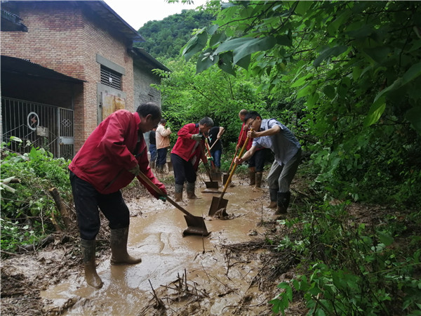 17日凌晨4點,高壓配電室后面圍墻坍塌,主變電室進水,后排水溝被泥石流掩埋,選廠主任老黨員濮國榮第一時間通報并提出搶險處理方案后,金礦組織機關全體工作人員和選廠部分工人一起冒雨進行應急處理,對坍塌的圍墻及時進行清理,人工裝袋扛運15噸渣石堆筑起防洪墻,保證了電力的正常供應。
