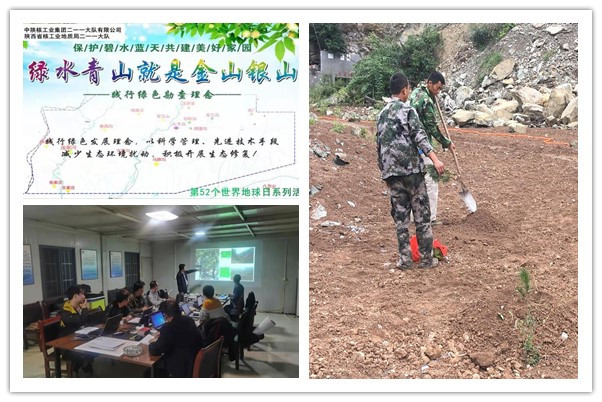 礦產(chǎn)勘查院在鳳縣的全體項(xiàng)目成員在馬蹄溝項(xiàng)目部召開(kāi)了宣傳會(huì),支部書記葉奎同志通過(guò)多媒體介紹了“世界地球日”活動(dòng)主題,并結(jié)合礦產(chǎn)勘查院工作實(shí)際情況領(lǐng)學(xué)了綠色勘查規(guī)范,參會(huì)同志們交流了工作中應(yīng)注意的環(huán)保小妙招和工作經(jīng)驗(yàn)。會(huì)后各項(xiàng)目成員在馬蹄溝金礦東段勘查工作區(qū)實(shí)地開(kāi)展了植樹(shù)活動(dòng),通過(guò)實(shí)際行動(dòng),深入踐行“綠水青山就是金山銀山”的綠色發(fā)展理念,現(xiàn)場(chǎng)種植白皮松500余棵,播撒草籽10余斤。