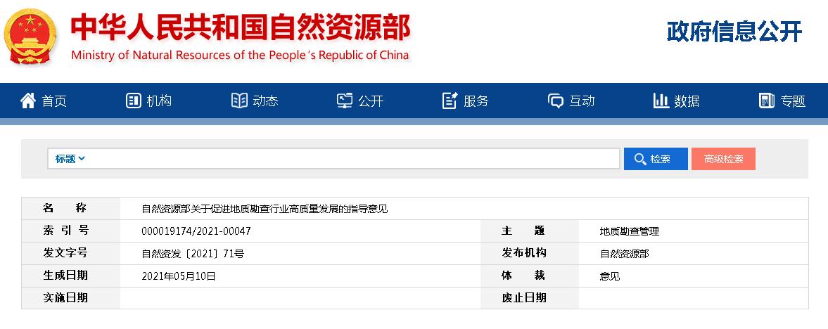 自然資源部關(guān)于促進(jìn)地質(zhì)勘查行業(yè)高質(zhì)量發(fā)展的指導(dǎo)意見
