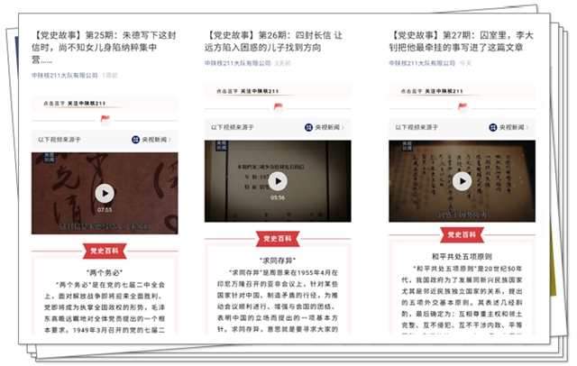 “聽”黨史故事。通過公司官微每周發(fā)布3期百集《紅色檔案》黨史故事微紀(jì)錄片,方便野外一線職工下山之后或工作之余利用手機觀看、聆聽黨百年輝煌歷程中革命先輩所表現(xiàn)出的百折不撓的奮斗精神的故事,以及深入了解黨的重大歷史事件。把黨史故事以視頻的形式推送給一線職工,在一線職工中取得了良好成效。