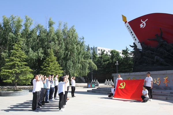 在英雄浮雕前,集體緊握右拳,莊嚴(yán)宣誓,重溫入黨誓詞,感悟初心使命。