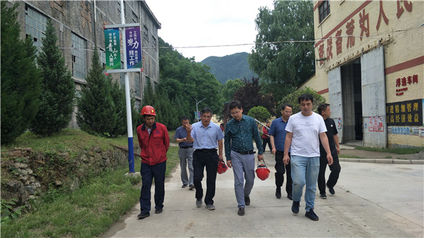 6月15日至17日,集團(tuán)公司副總工程師李靠社一行到二一一大隊(duì)鳳北地區(qū)檢查指導(dǎo)工作,集團(tuán)公司地質(zhì)礦業(yè)部部長(zhǎng)雷新虎、大隊(duì)副總經(jīng)理、陜西龐家河金礦有限公司董事長(zhǎng)盧飛陪同檢查。