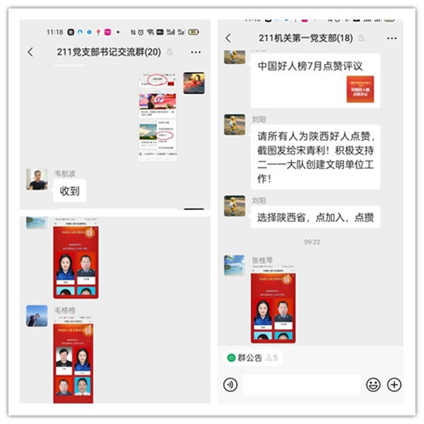 公司各支部收到通知后迅速行動,組織廣大干部職工學習宣傳中國好人候選人的先進事跡,積極參與網上點贊評議投票活動,干部職工通過“中國文明網”微信客戶端,對陜西省推薦的助人為樂候選人“陳笑”“胡小軍”“譚云”、敬業(yè)奉獻候選人“蘇麗”“王軍鵬”、孝老愛親候選人“張俊”“賀晶晶”、見義勇為候選人“柯勇”進行了點贊評議。