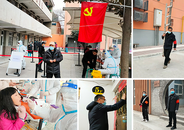 2021年12月27日中午12時,溫度已至零下,寒風(fēng)凜冽。在小區(qū)里面,卻有這么一群人,他們跺著腳、搓著手,頂著寒風(fēng),積極配合開展封閉后的第三輪全民核酸檢測,他們就是由211大隊置業(yè)公司、機關(guān)部分人員等組成的抗擊疫情黨員先鋒隊。
