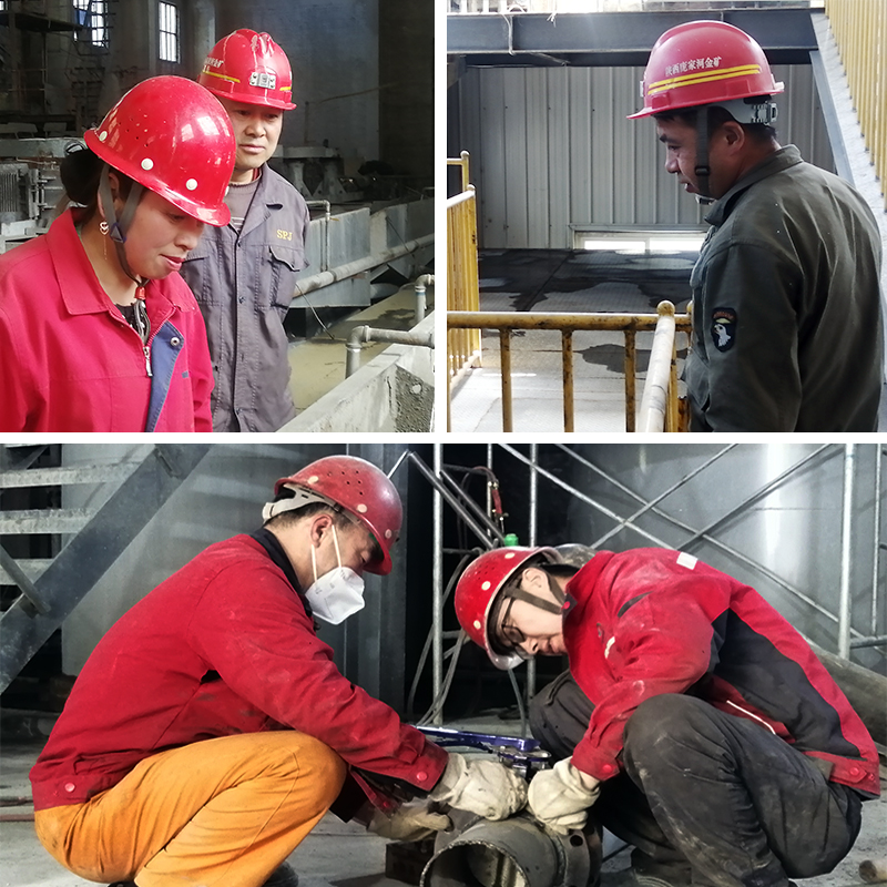 浮選車間操作工齊霞、趙瑞仔細(xì)觀察泡沫,球磨車間操作工郭巧林一絲不茍察看設(shè)備運(yùn)轉(zhuǎn),機(jī)修人員爭(zhēng)分奪秒修理故障,保證機(jī)器設(shè)備運(yùn)轉(zhuǎn)正常。