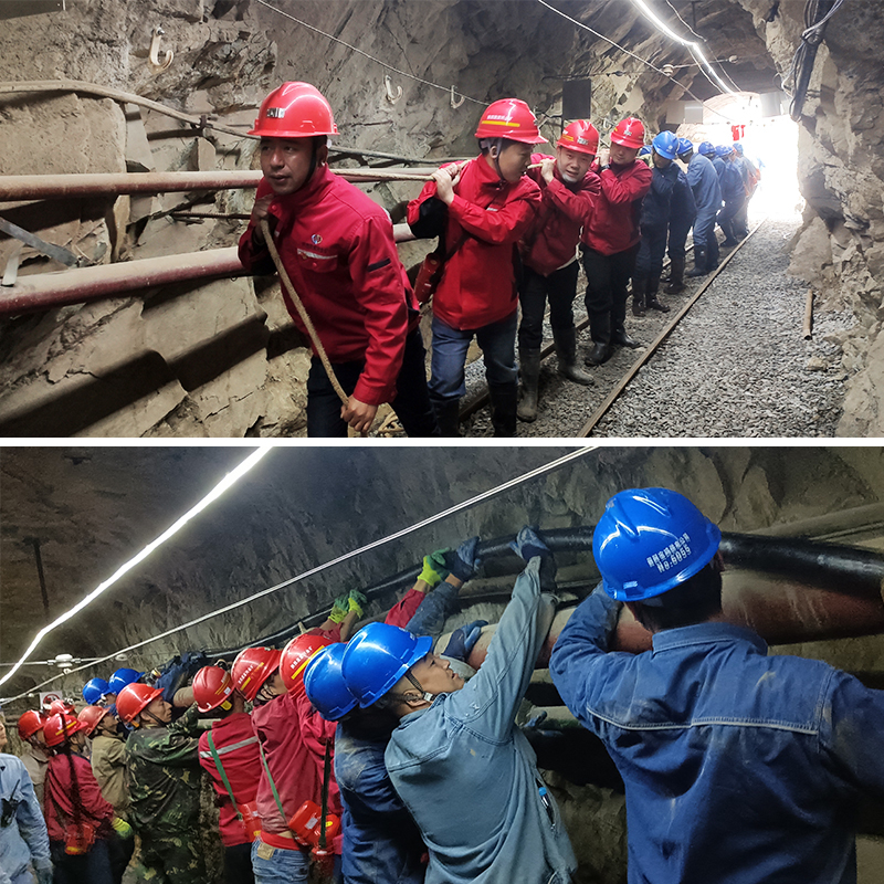 改造提升工作的順利進(jìn)行,得益于國家電網(wǎng)鳳縣供電局、寶雞先行電力公司銀河工程分公司的鼎力支持和積極配合。兩家單位及龐家河金礦項(xiàng)目負(fù)責(zé)同志,充分發(fā)揮永不懈怠、刻苦攻堅(jiān)、不畏艱辛的精神,以辦好事、辦實(shí)事,為標(biāo)尺開展工作,帶領(lǐng)團(tuán)隊(duì)在高質(zhì)量發(fā)展上奮勇爭先。三家單位精心組織、精誠合作、緊密配合,始終保持高效施工狀態(tài),以最快的速度保障了施工任務(wù)的完成。在施工最緊張的一個(gè)星期里,肖強(qiáng)和部門負(fù)責(zé)人張毛百同志,帶領(lǐng)其他人員始終現(xiàn)場值守,指揮安排、協(xié)同作業(yè),和施工人員同吃同住,多次在井下連續(xù)奮戰(zhàn)30余小時(shí)。由于組織到位、措施有效、落實(shí)有力,整個(gè)改造提升工程緊鑼密鼓、有條不紊。在工程質(zhì)量、工期要求與生產(chǎn)銜接的三重考驗(yàn)下,關(guān)鍵時(shí)刻拉得出,危急關(guān)頭沖得上,取得了10萬噸/年采選改擴(kuò)建工程階段性勝利,譜寫出新時(shí)代青年共產(chǎn)黨員勇于擔(dān)當(dāng)、敢于爭先的沖鋒拼搏精神,發(fā)揚(yáng)了地質(zhì)人“三光榮、四特別”的優(yōu)良傳統(tǒng)。