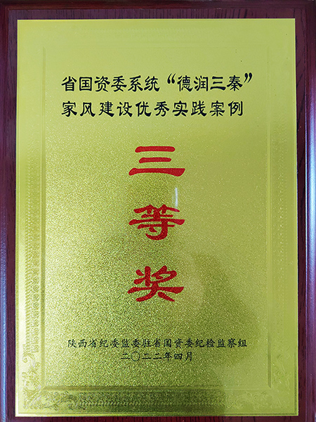 近日,公司在2021年度省國資委“德潤三秦”家風建設活動中榮獲優(yōu)秀家風實踐案例三等獎。