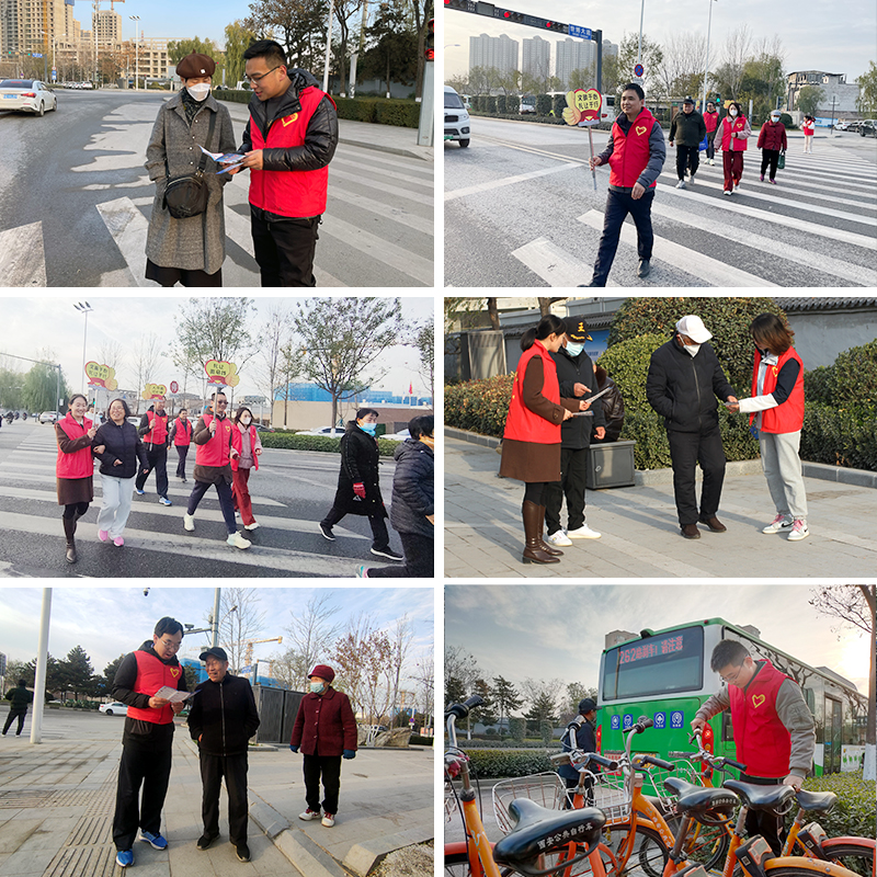 活動(dòng)中,志愿者們提綱挈領(lǐng)為路上行人講解道路交通安全法律法規(guī)和安全行車常識(shí),根據(jù)信號(hào)燈的指示,引導(dǎo)行人安全有序通過馬路,主動(dòng)整理擺放便捷單車。
