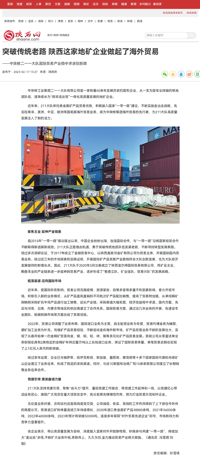 【媒體關(guān)注】陜西網(wǎng) | 突破傳統(tǒng)老路 陜西這家地礦企業(yè)做起了海外貿(mào)易