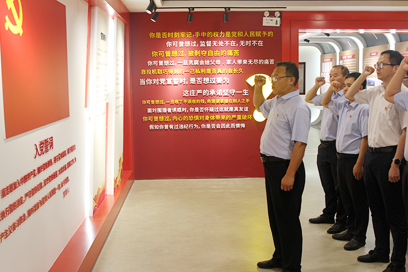 參觀結(jié)束后,全體黨員面向鮮紅的黨旗,在任斌的領(lǐng)誓下,重溫入黨誓詞。錚錚誓言時刻提醒每一名黨員,要自覺遵紀(jì)守法,挺紀(jì)在前,要時刻不忘初心,牢記使命,努力工作,無愧于自己的入黨誓言。