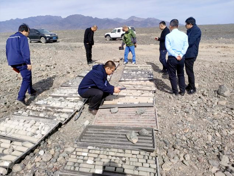 上午,專家組深入野外施工現(xiàn)場,對項目實施的地表調(diào)查工作及鉆探工程施工質(zhì)量,鉆探巖心編錄情況、綠色勘查踐行情況進行了現(xiàn)場驗收。